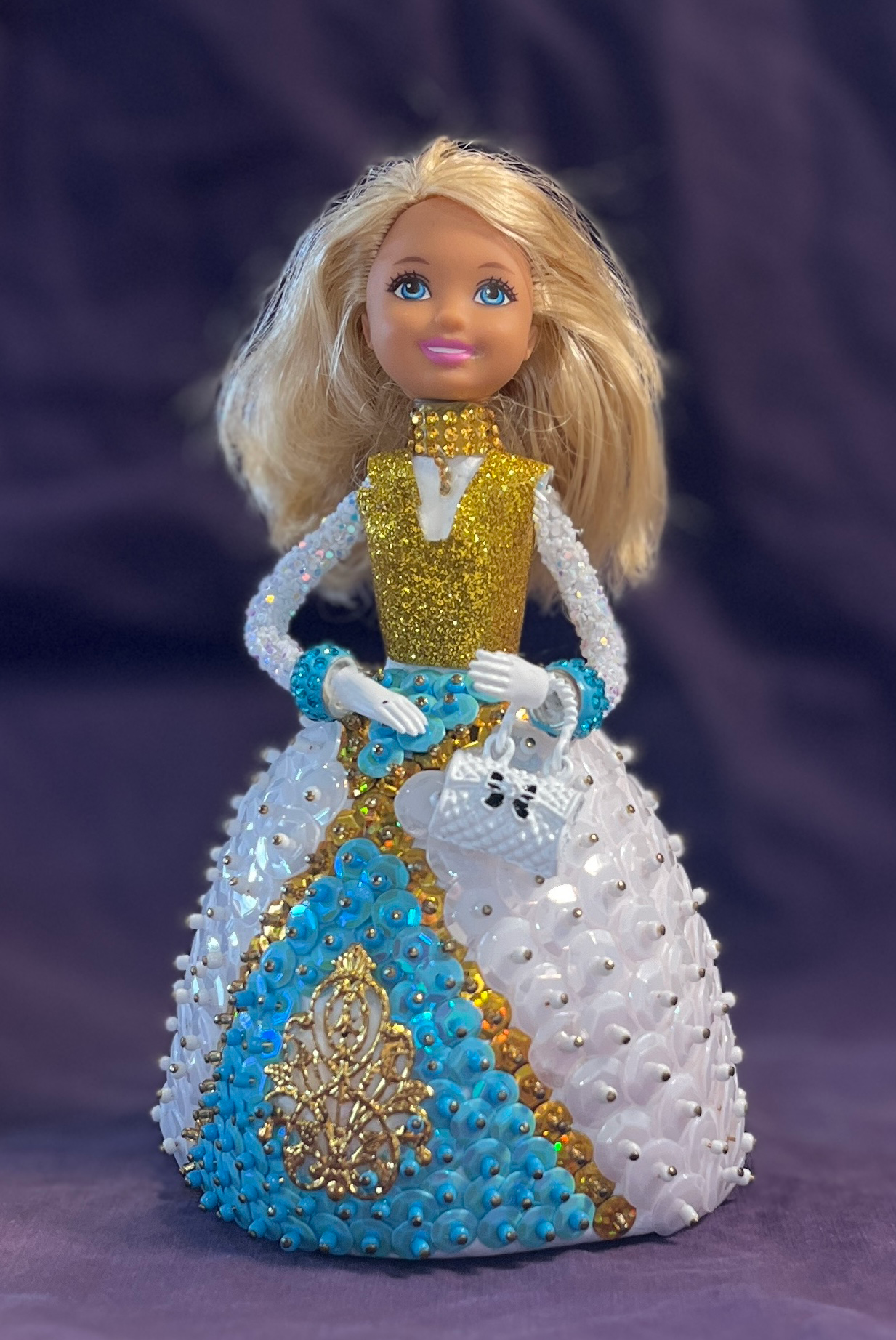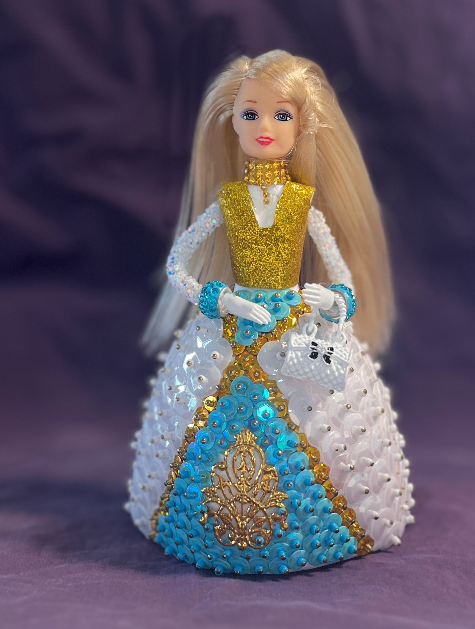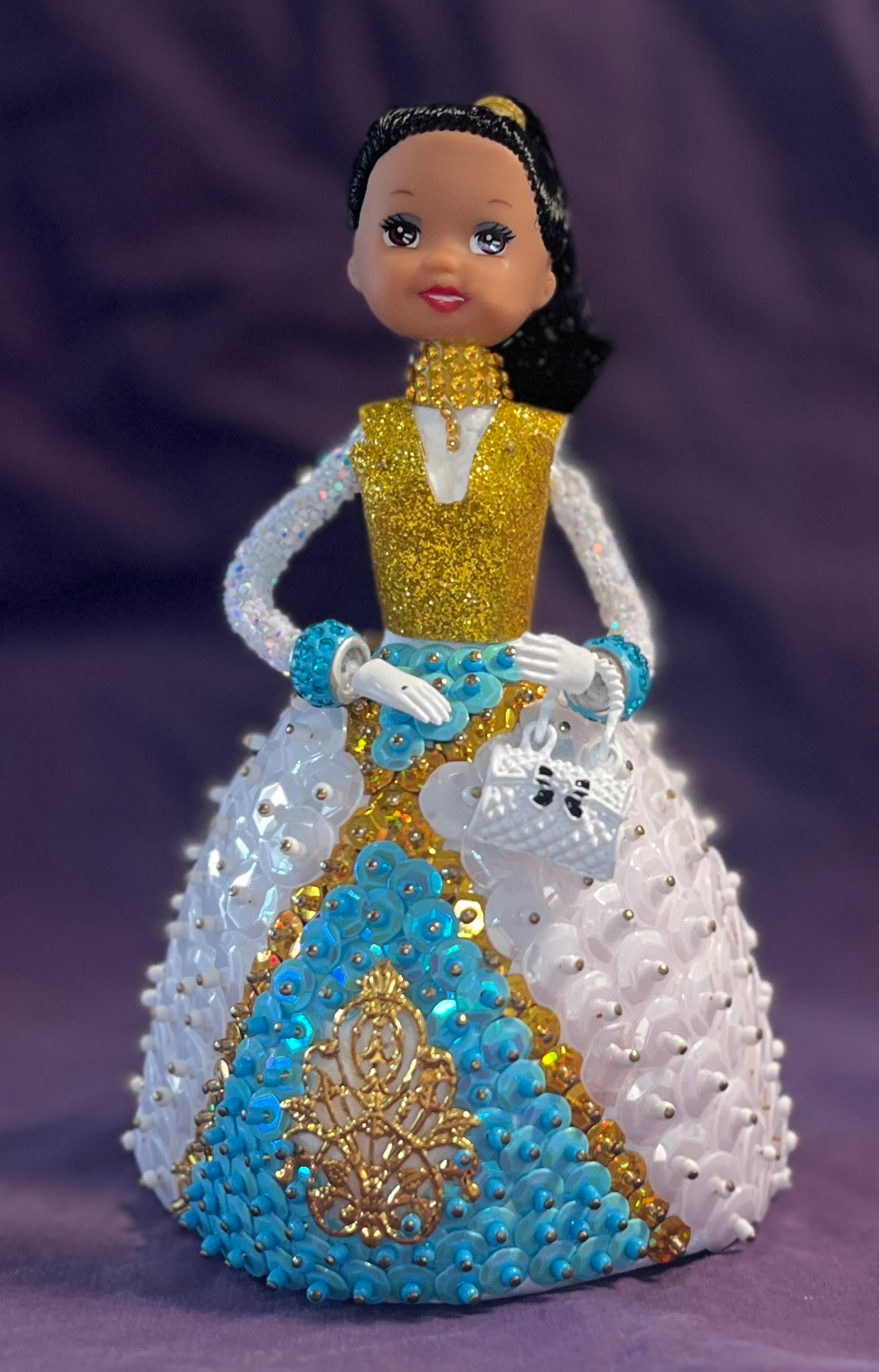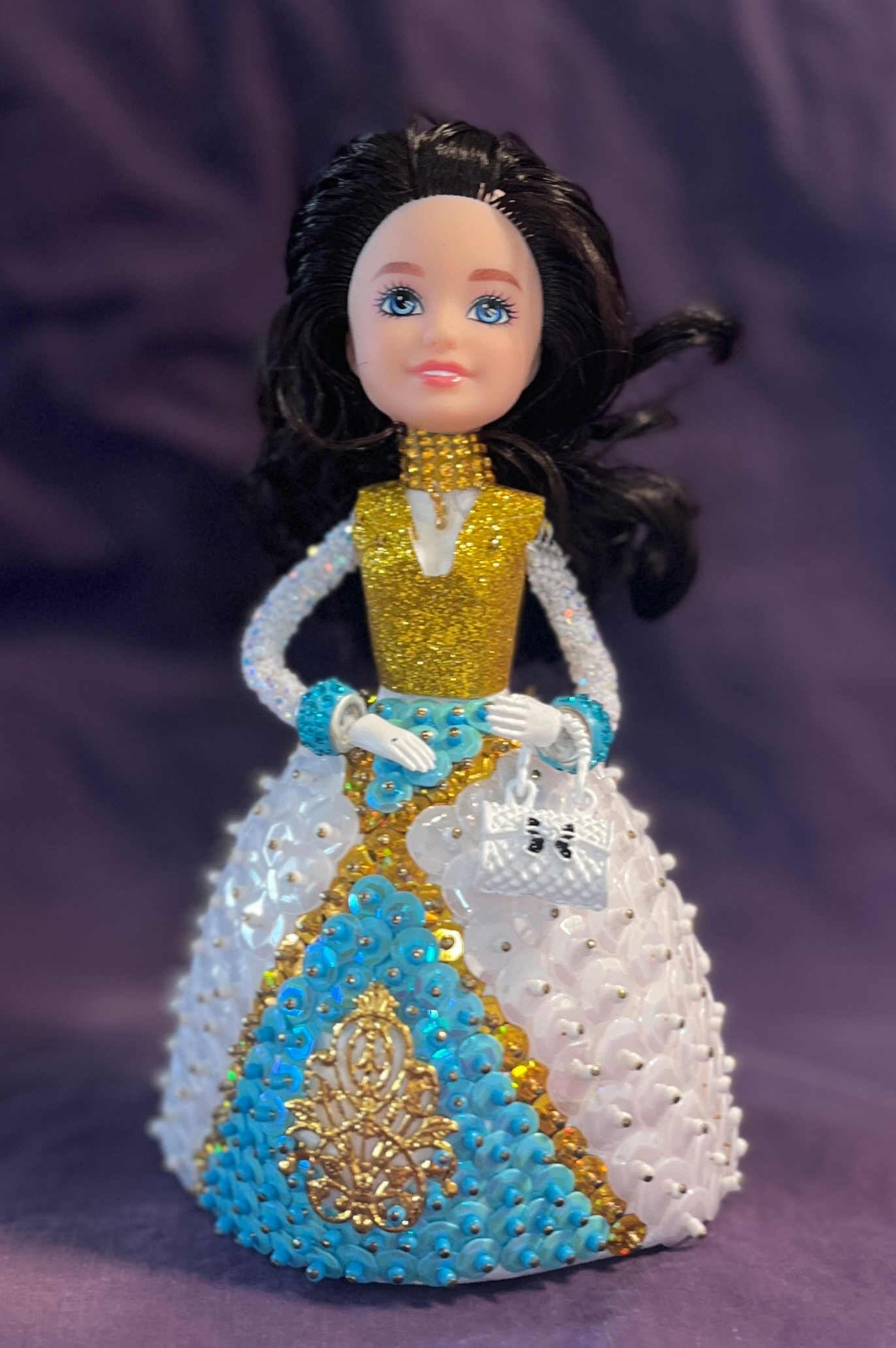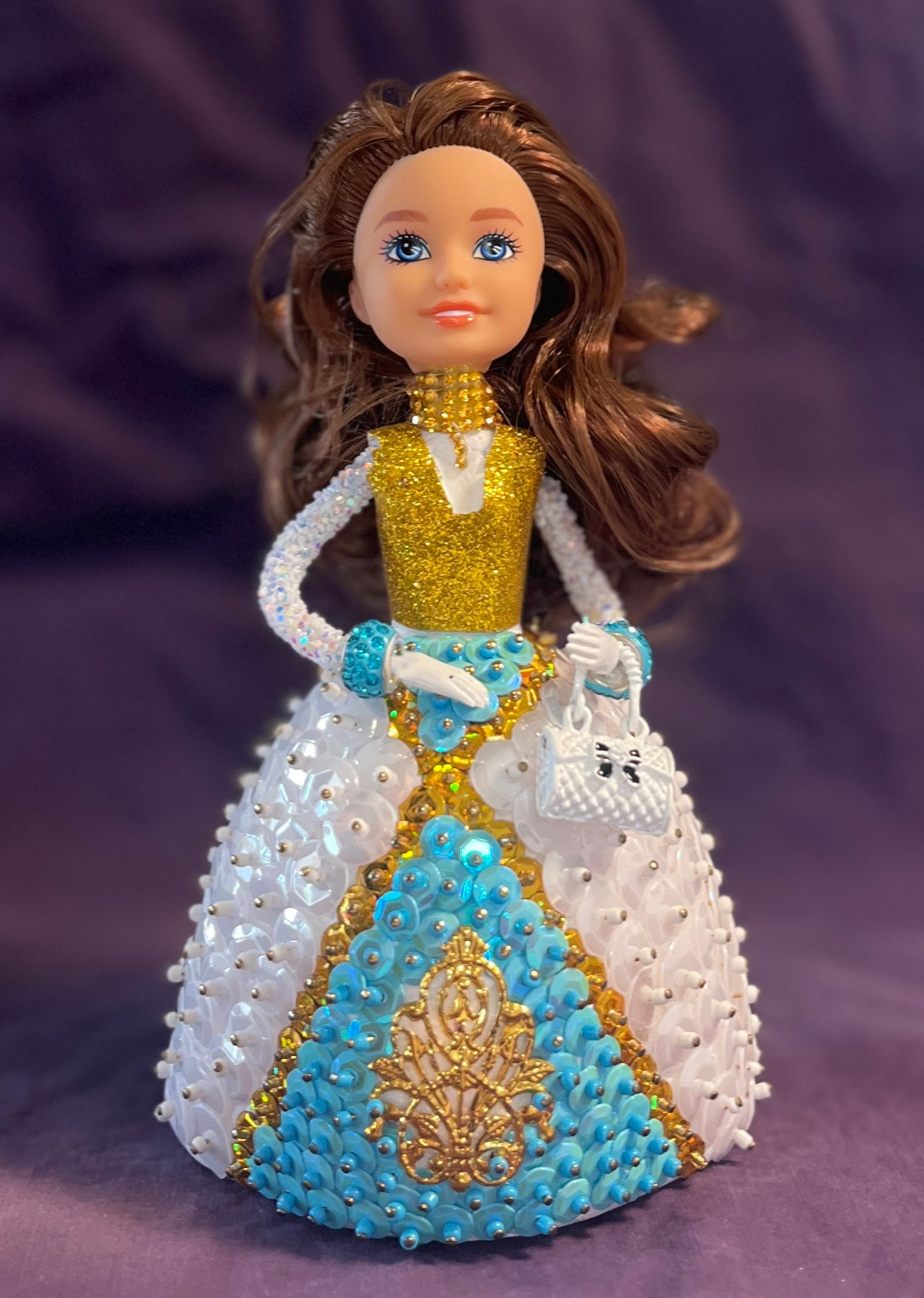 Say hello to Aurora, the Lil Missy Doll who’s equal parts elegance and whimsy, with just a dash of “I’m fabulous and I know it!” Dressed to impress in a shimmering ball gown of white sequins, Aurora knows how to make an entrance—whether it’s at a royal ball or a weekend brunch (she’s versatile like that).